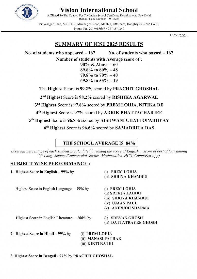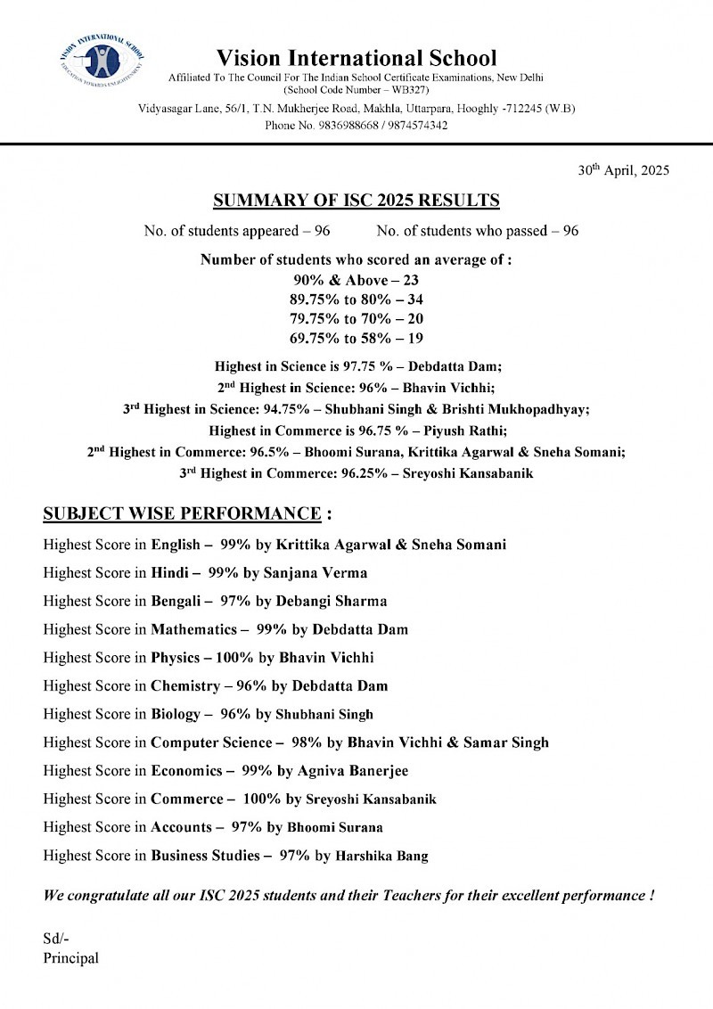 9. Because the students from VIS rank amongst the nationwide top 1% performers in Class XII Board exams, bagging scholarships from the Government of India for higher studies.